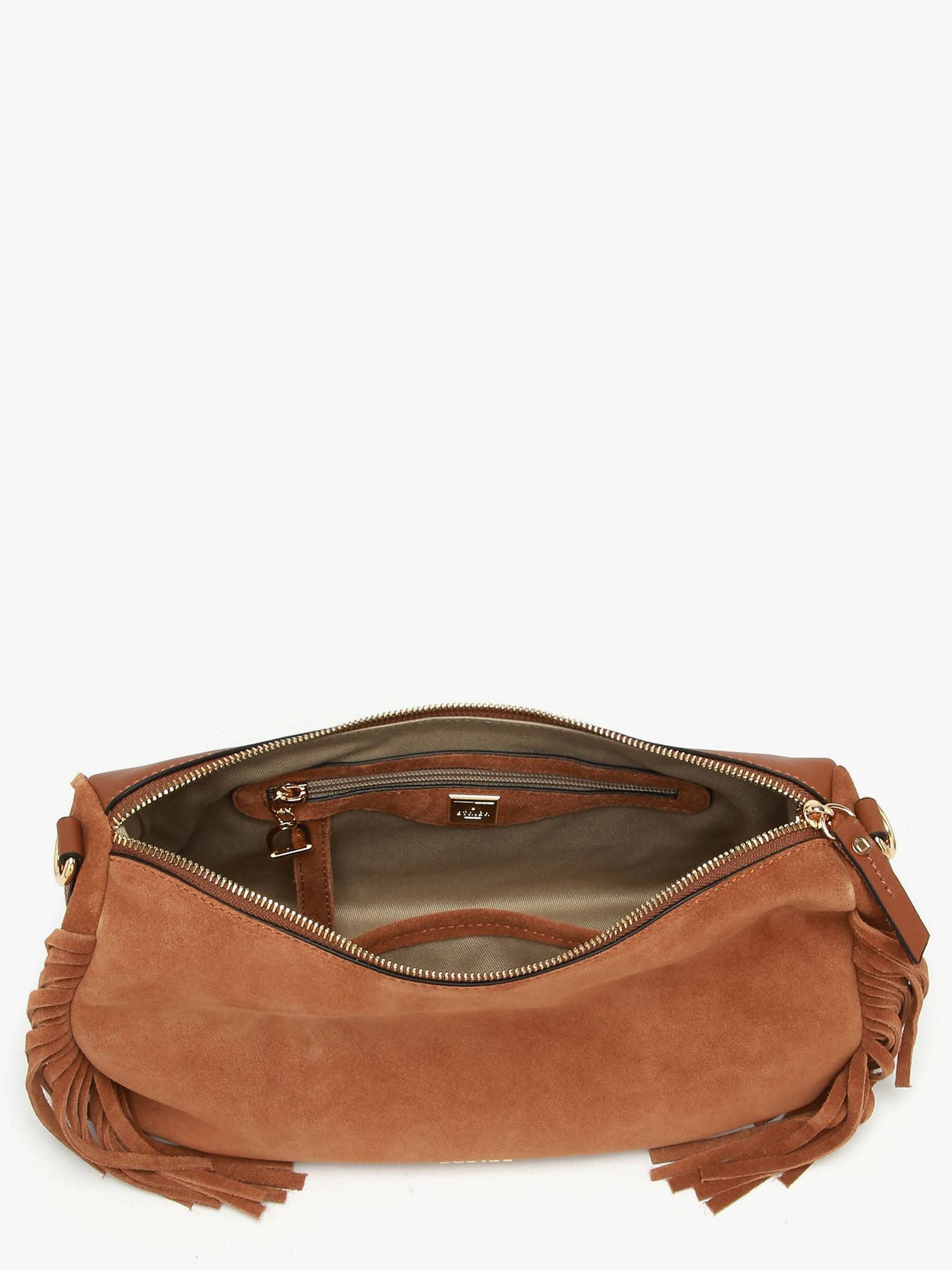 De cross body tas COUNTRY van ETRIER in maat M combineert ontspannen elegantie met een vrije geest, trouw aan de identiteit van de lijn. Gemaakt van suèdeleer met een achterkant in glad leer, valt hij op door zijn iconische franjes en zijn ruime ontwerp. De ritssluiting garandeert de veiligheid van je spullen en maakt snelle toegang tot je essentials mogelijk. De verstelbare en afneembare schouderriem zorgt voor comfortabel en aanpasbaar draagcomfort, afgestemd op je behoeften. Aan de achterkant biedt een praktisch vak directe toegang, terwijl aan de binnenkant een steekvak en een ritsvak een georganiseerde opbergruimte garanderen. Dit model in maat M is ideaal voor wie meer ruimte zoekt zonder in te boeten op stijl of functionaliteit.