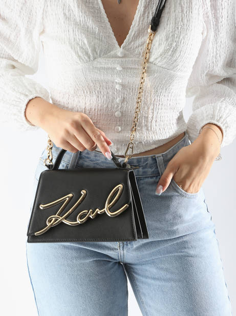 • Cross Body Tas K Signature Leder Karl lagerfeld Zwart k signature A1W30038