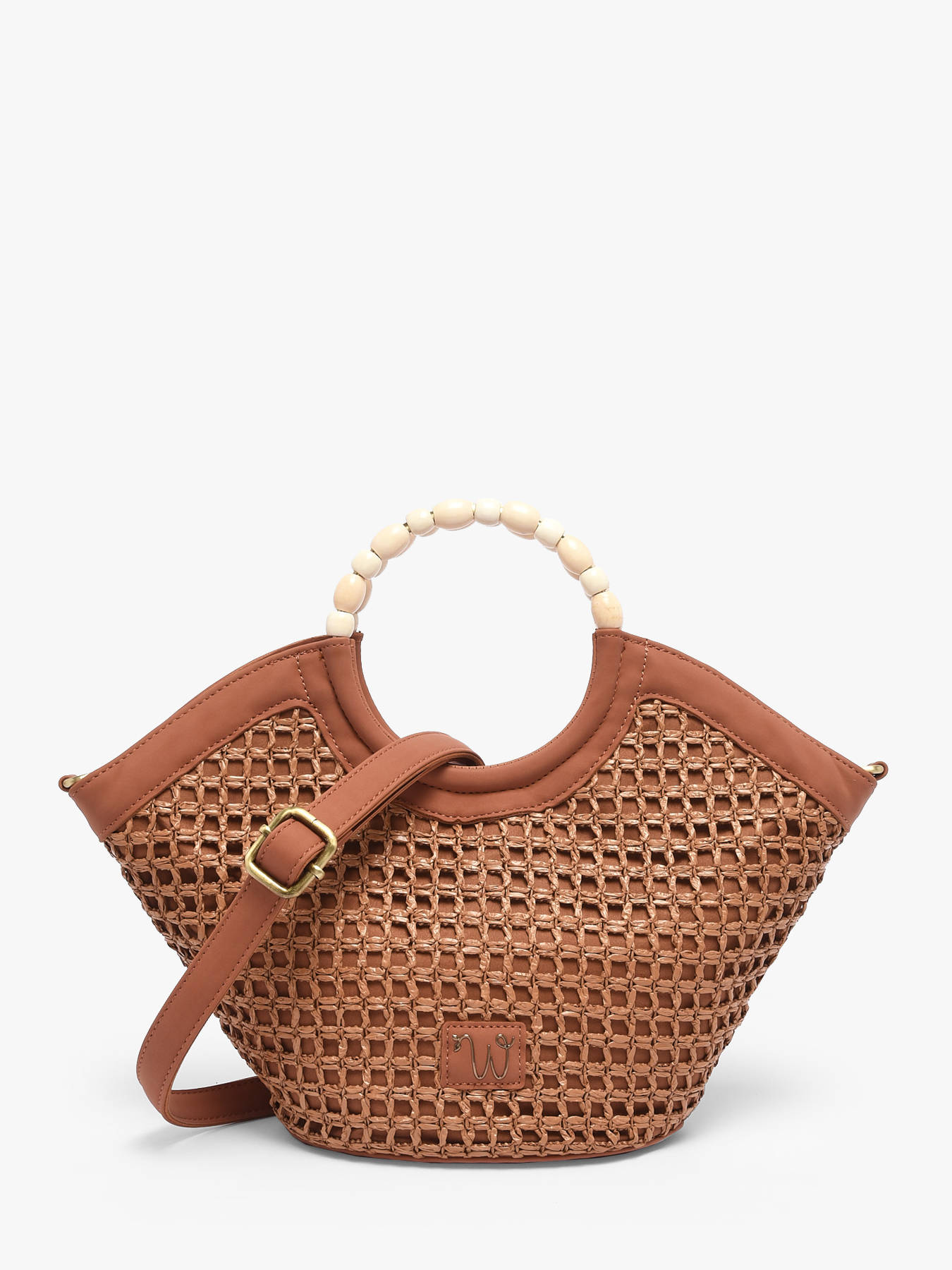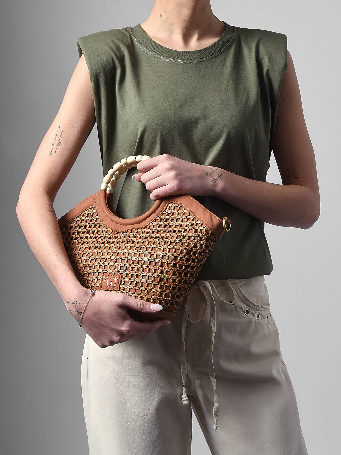 De cross body tas WOOMEN klein formaat uit de lijn Neflier Estival combineert elegantie, praktisch gebruik en een zomerse uitstraling. Het hoofdmateriaal van polypropyleen met gerecycled polyurethaan, in combinatie met de voering van katoen en linnen, zorgt voor stevigheid en lichtheid. De verfijnde afwerking en het handvat bedekt met parels geven het model originaliteit en raffinement. Deze bimateriële tas beschikt over een ritssluiting en een afneembare polyurethaan schouderriem voor flexibel dragen, afhankelijk van je voorkeur. Het gouden resinelogo maakt het ontwerp compleet, waardoor deze tas een functioneel en stijlvol accessoire is, perfect om je zomerse outfits te completeren.