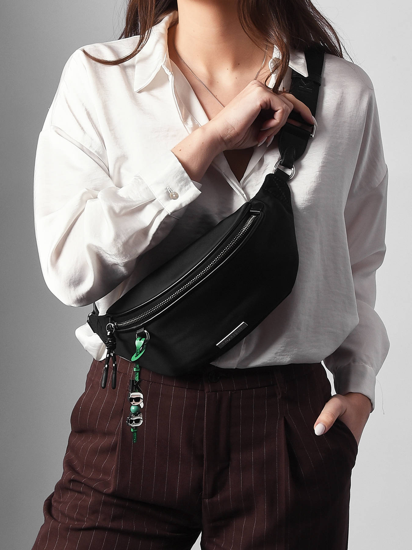 Een stijlvolle Heuptasje uit de K ikon collectie van het merk Karl lagerfeld, die u gekruist kunt dragen. Keuze bij de vleet!