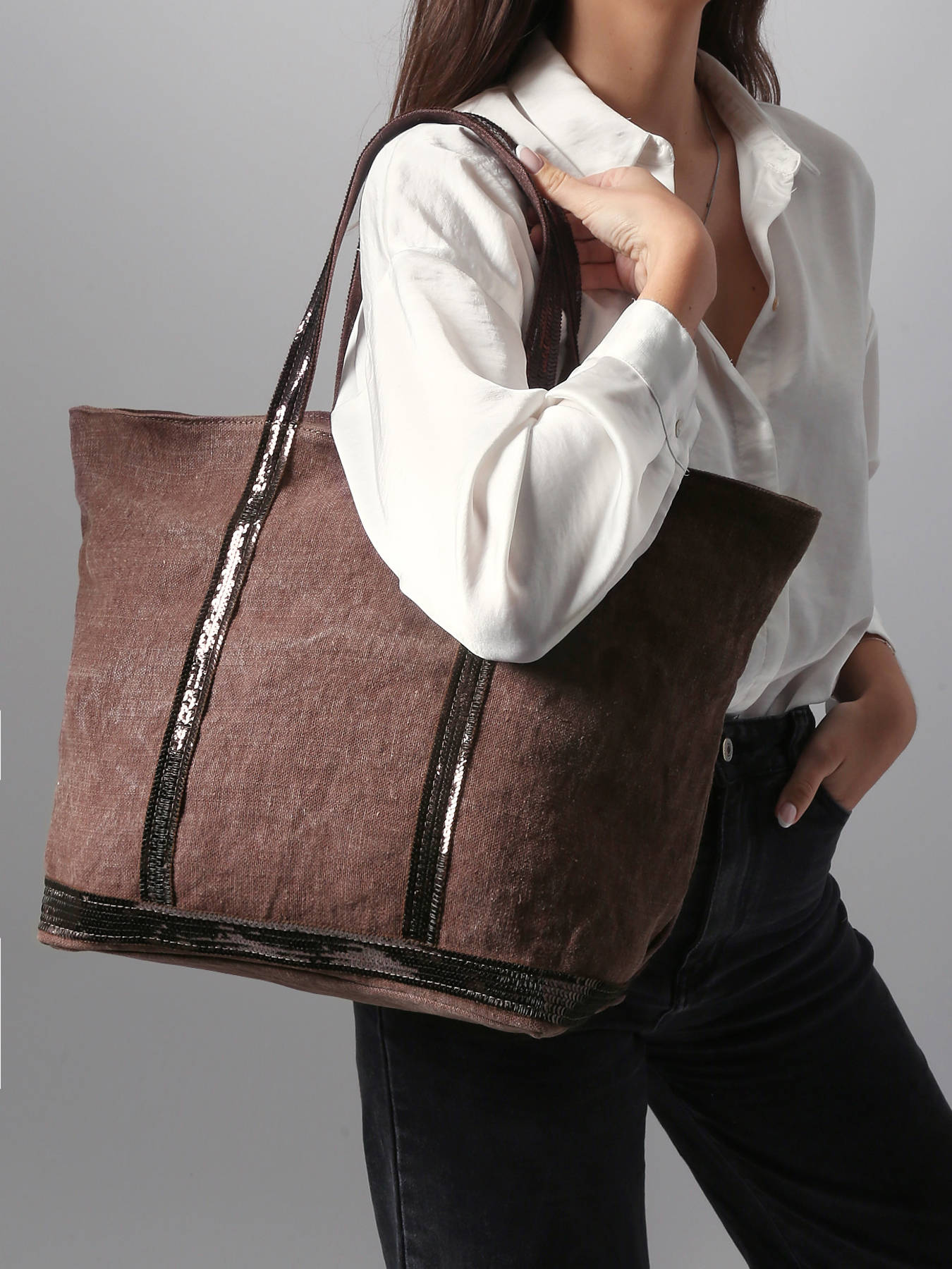 • Handtas L Le Cabas Linnen Pailletten Vanessa bruno Zwart cabas lin 31V40315